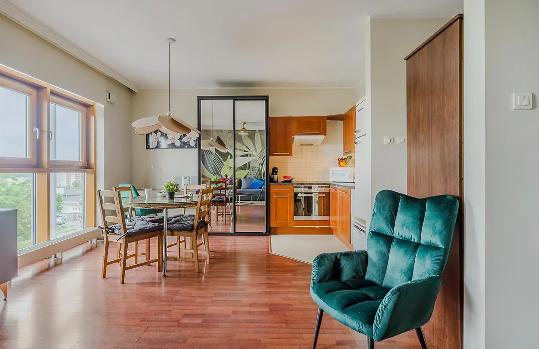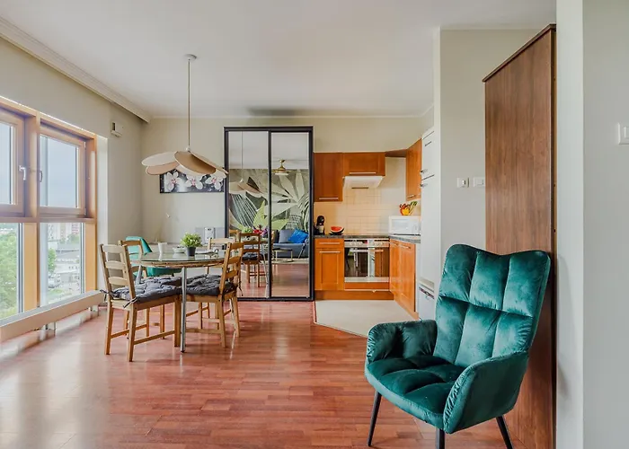 Obiekt oferuje wygodne udogodnienia do samodzielnego przygotowywania posiłków, w tym pełnowymiarową kuchnię ze zmywarką do naczyń. Obiekt noclegowy położony jest tuż za rogiem od najbliższego przystanku autobusowego - CH Arkadia 01.
